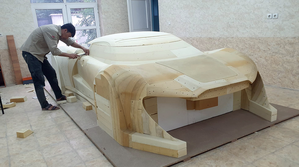 Ahmadi, bir yarış için kullanılacaksa daha sonra değiştirilmesi gereken bu arabayı üretmek için bir Toyota Corolla'nın motorunu kullandı.