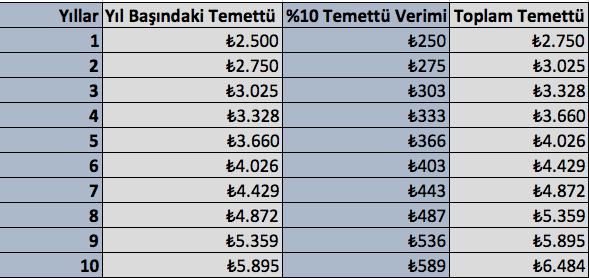 Yani yıllık 12.000 TL'lik hisse alalım. 10 yıl sonra yaptığımız yatırımın, o zaman ki güncel rakamlarla işe yarar bir meblağ olması için her yıl söz konusu yatırım bedelini, gelirinizin artış oranında yada en az açıklanan enflasyon oranında artırın.