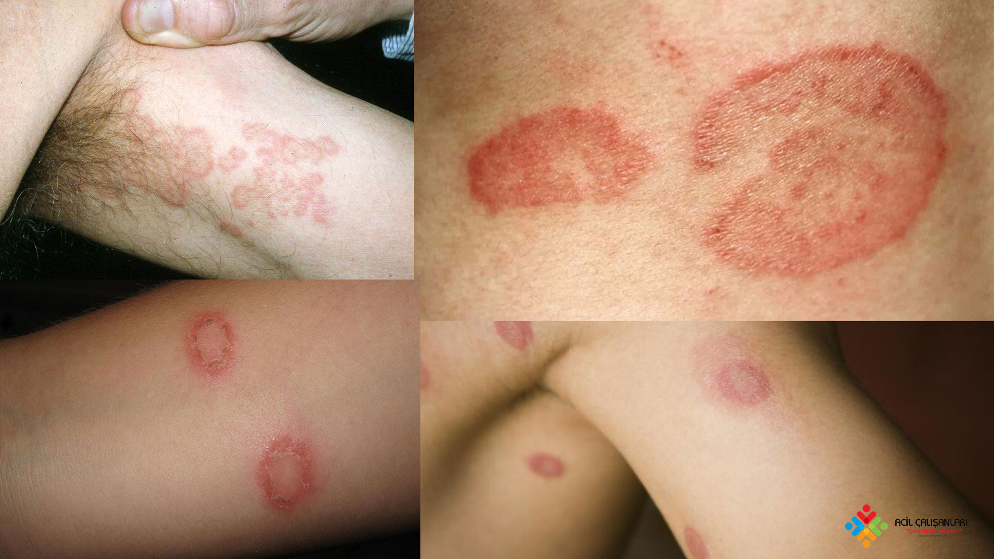 Deride halka şeklinde kızarıklık ve farklı renkte lezyonlar