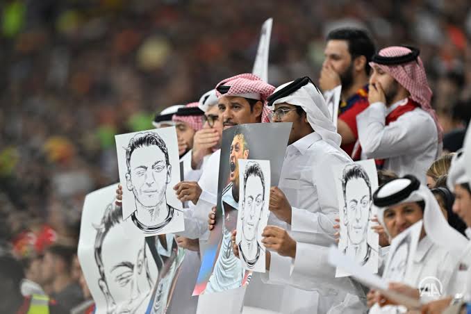 Katarlı taraftarlar Pazar günü Almanya'nın, ırkçı tacizin hedefi ve Almanya'nın 2018'de Dünya Kupası'ndan erken ayrılmasının günah keçisi haline geldikten sonra milli takımı bırakan eski futbolcu Özil'e yönelik şüpheli muamelesine atıfta bulundu.