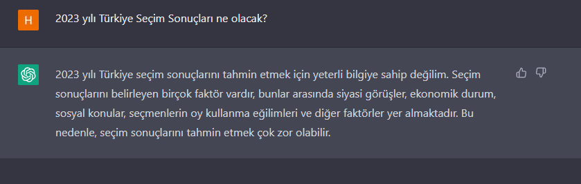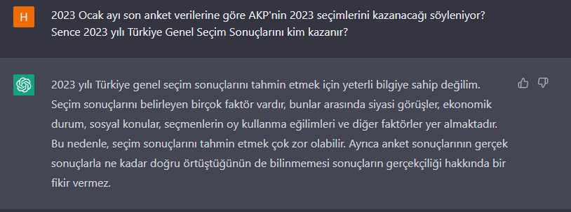 ChatGPT’nin yanıt verdiği 2023 seçim sonuçları sorusu