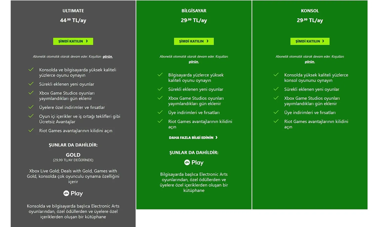 - Xbox Game Pass Konsol: 29,99 TL > 79,99 TL
